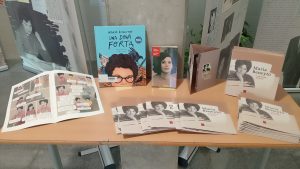 I per altra, durant tota una setmana, al hall de la Biblioteca, hem gaudit de l’exposició itinerant «Maria Beneyto: vida ferida de lletra», organitzada per l’Acadèmia Valenciana de la Llengua, formada per dotze panells que repassen la vida i la trajectòria literària de l’Escriptora de l’Any 2025, Maria Beneyto.